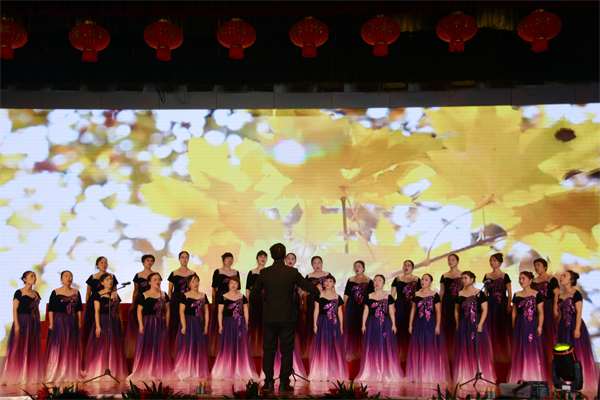 28日晚,屏风校区体育馆内流光溢彩,歌舞欢腾,处处洋溢着节日的欢愉气氛。由商学院、土木与建筑工程学院、材料科学与工程学院三个学院大学生艺术团和附属小学共同带来的开场舞蹈《盛世花开》迅速点燃了现场的气氛。屏风校区的晚会,以“走进新时代 谱写新篇章”为主题,分“欢乐喜庆年”“奋进桂工人”“展望未来创新篇”三个篇章进行。